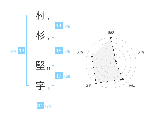 村杉 堅字さんを姓名の画数から五運を鑑定