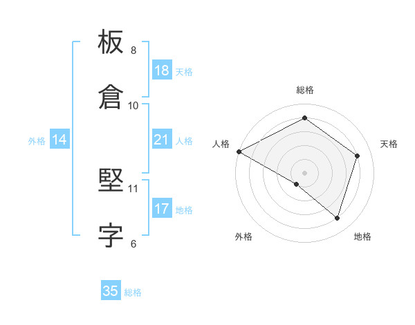 板倉 堅字さんを姓名の画数から五運を鑑定