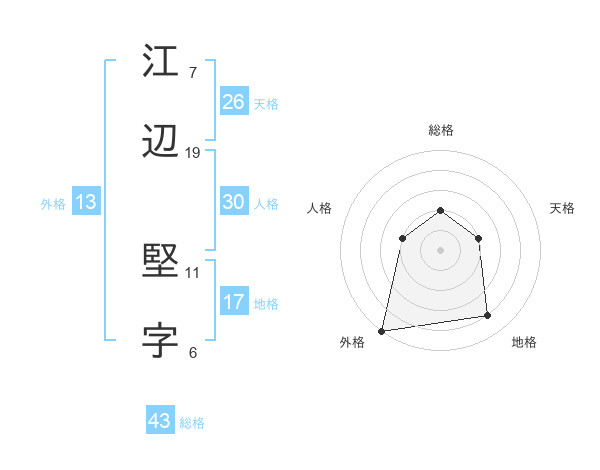 江辺 堅字さんを姓名の画数から五運を鑑定