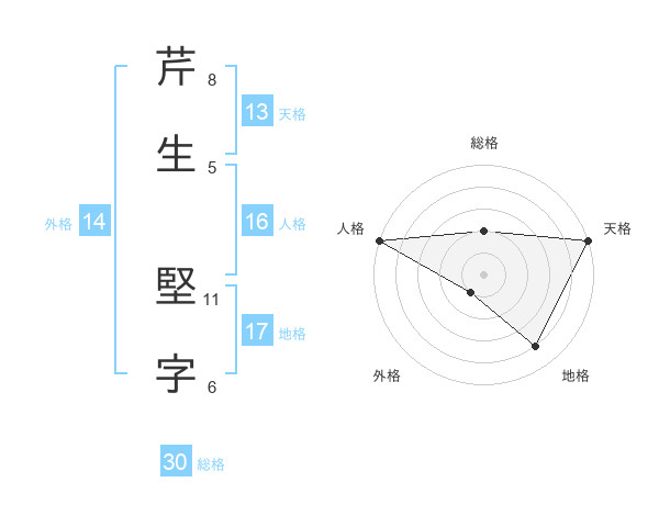 芹生 堅字さんの総格は30画の2点!