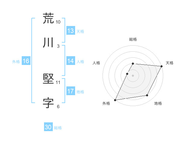 荒川 堅字さんの総格は30画の2点!