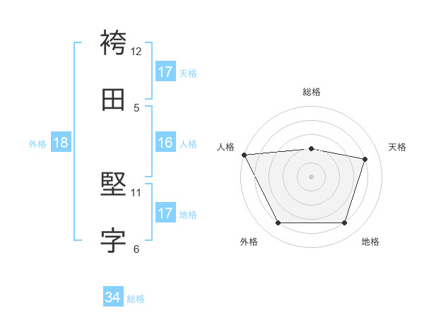 袴田 堅字さんの天格は17画の4点!