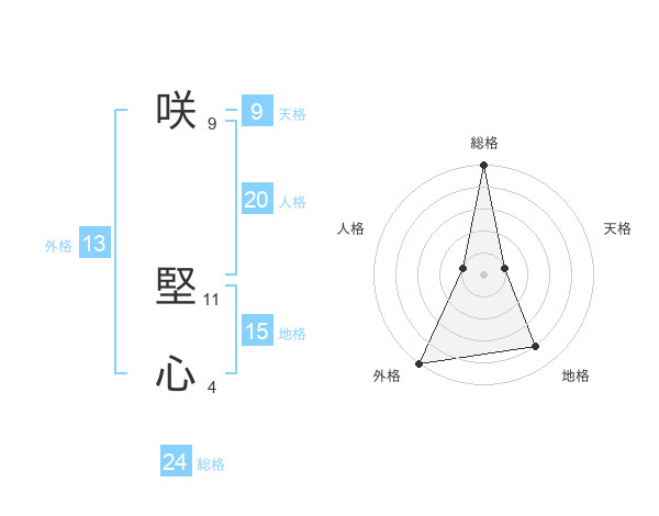 咲 堅心さんの総格は24画の5点!