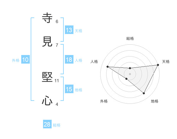 寺見 堅心さんを姓名の画数から五運を鑑定