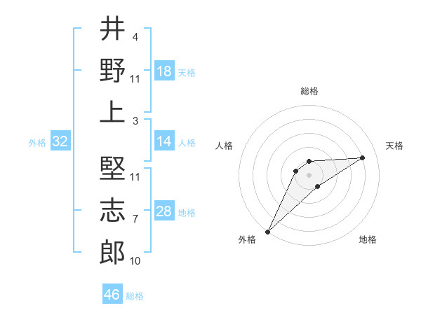 井野上 堅志郎さんを姓名の画数から五運を鑑定