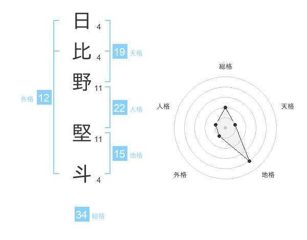 日比野 堅斗さんの総格は34画の2点!