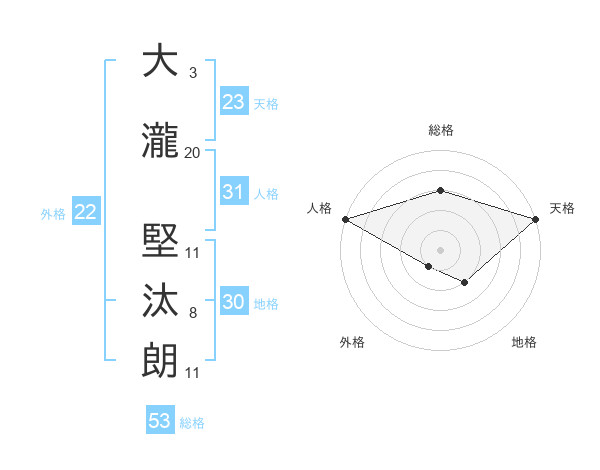 大瀧 堅汰朗さんを姓名の画数から五運を鑑定