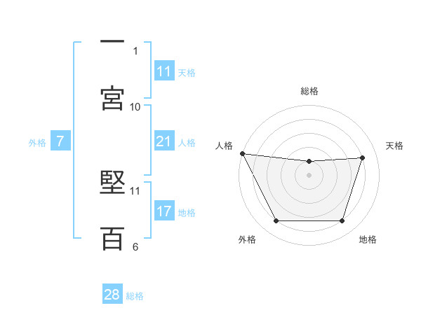 一宮 堅百さんの人格は21画の5点!