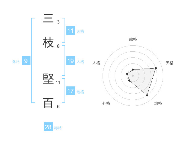 三枝 堅百さんの天格は11画の4点!