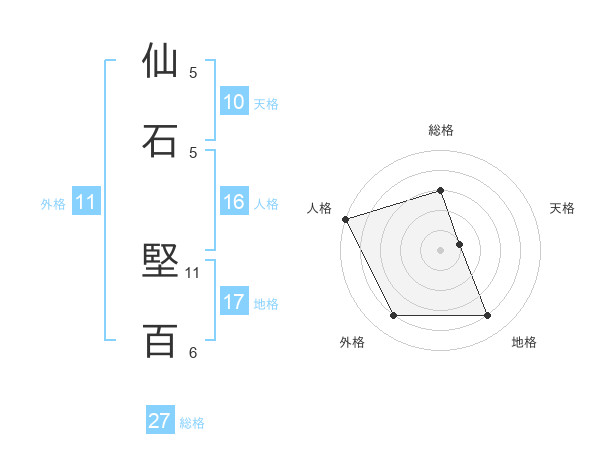 仙石 堅百さんを姓名の画数から五運を鑑定