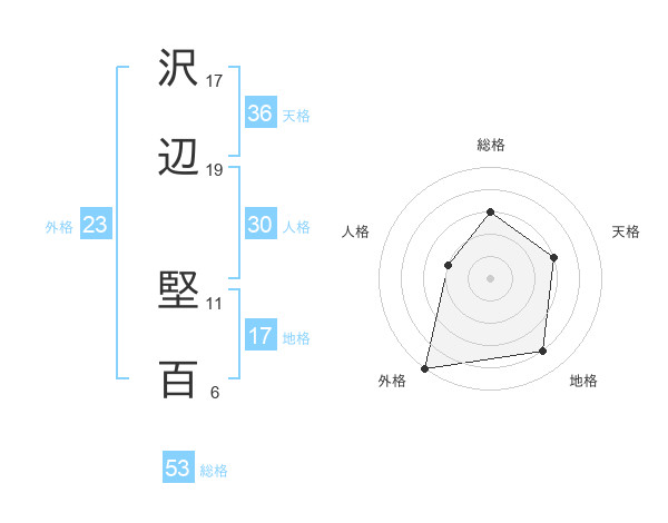 沢辺 堅百さんの総格は53画の3点!