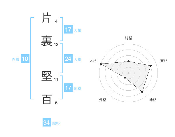 片裏 堅百さんを姓名の画数から五運を鑑定