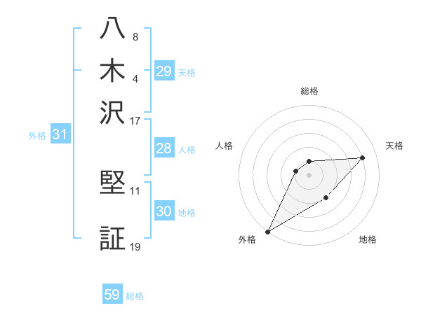 八木沢 堅証さんを姓名の画数から五運を鑑定