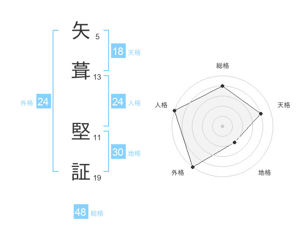 矢葺 堅証さんの外格は24画の5点!