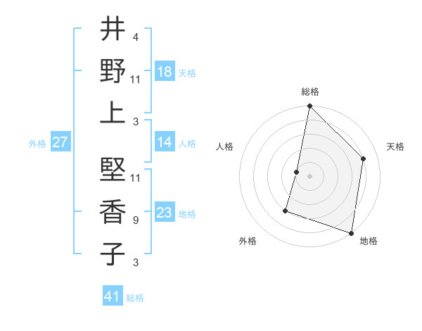 井野上 堅香子さんを姓名の画数から五運を鑑定
