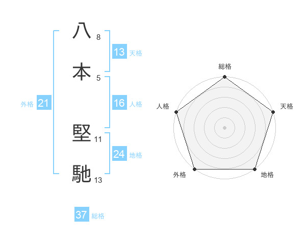 八本 堅馳さんの総格は37画の5点!