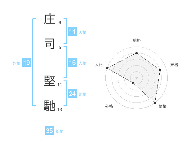 庄司 堅馳さんの総格は35画の4点!