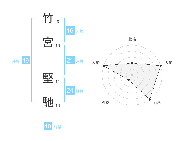 竹宮 堅馳さんの総格は40画の2点!