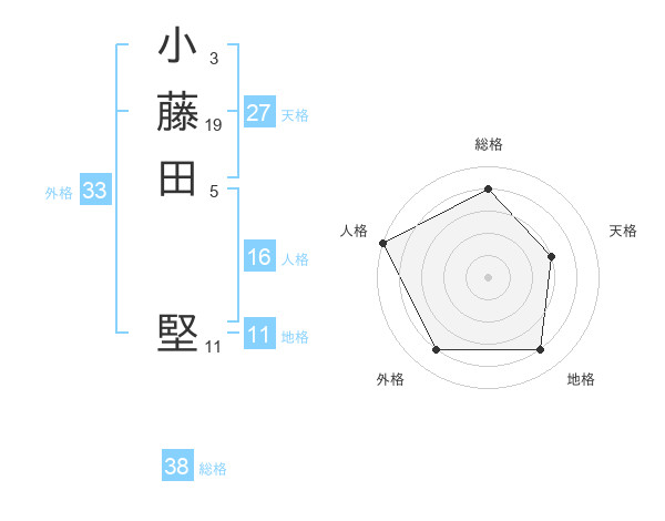 小藤田 堅さんを姓名の画数から五運を鑑定