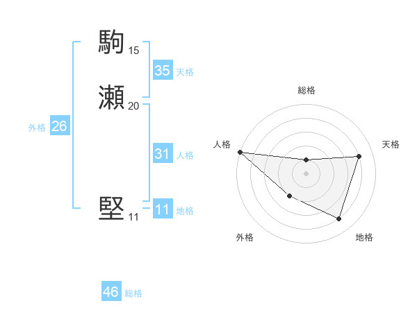 駒瀬 堅さんを姓名の画数から五運を鑑定