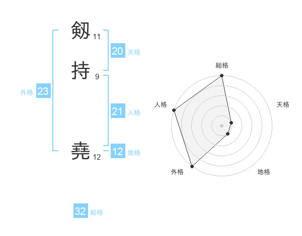 剱持 堯さんの総格は32画の5点!