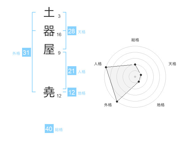 土器屋 堯さんを姓名の画数から五運を鑑定