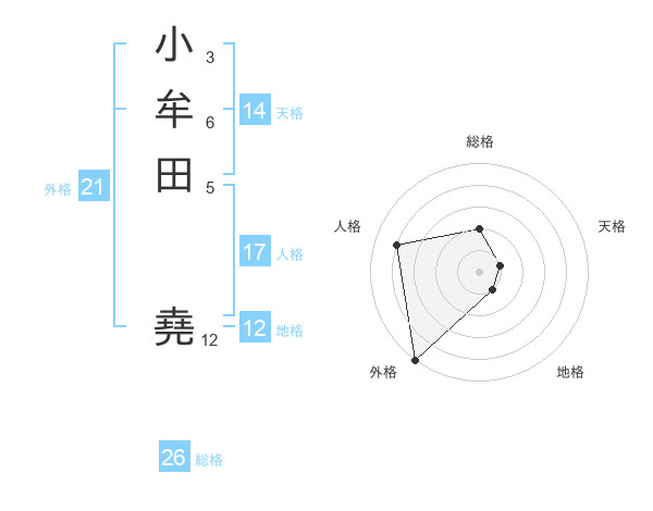 小牟田 堯さんを姓名の画数から五運を鑑定