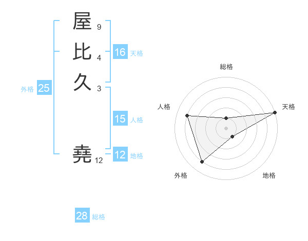 屋比久 堯さんの総格は28画の1点!