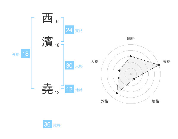 西濱 堯さんの天格は24画の5点!