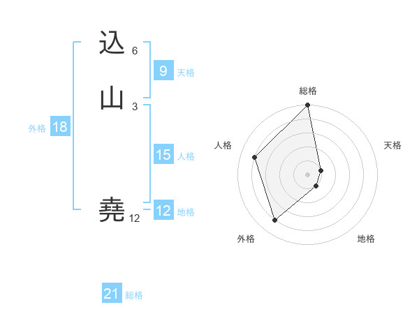 込山 堯さんの総格は21画の5点!