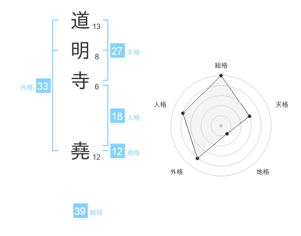 道明寺 堯さんの総格は39画の5点!