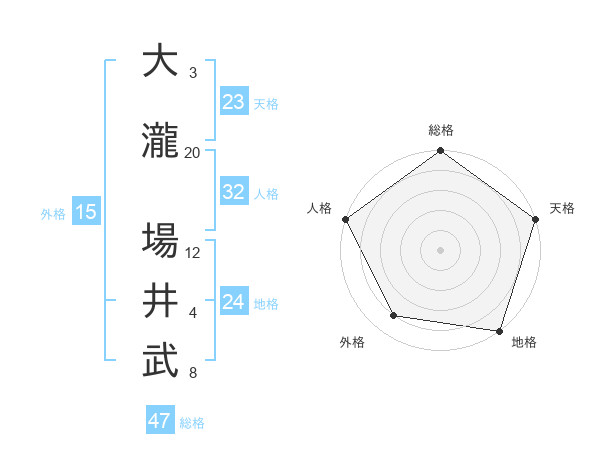 大瀧 場井武さんを姓名の画数から五運を鑑定