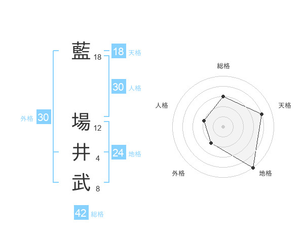 藍 場井武さんの天格は18画の4点!