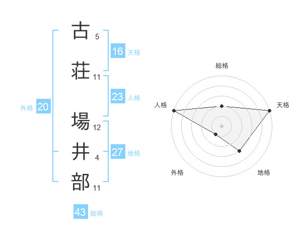 古荘 場井部さんを姓名の画数から五運を鑑定