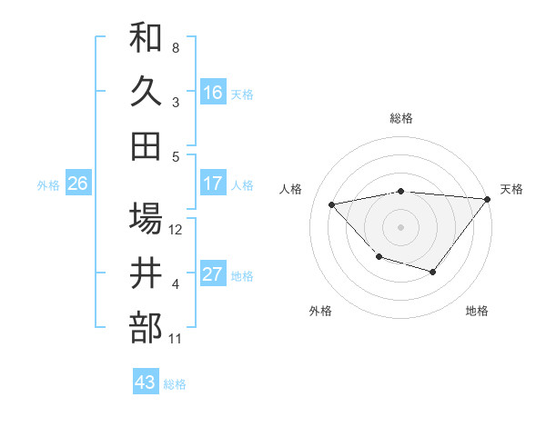 和久田 場井部さんを姓名の画数から五運を鑑定