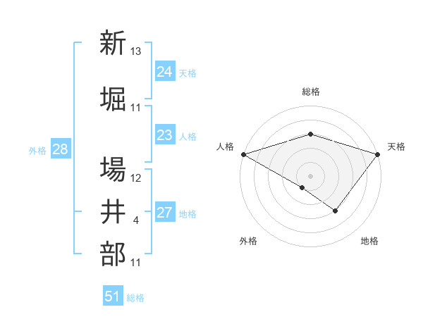 新堀 場井部さんの総格は51画の3点!