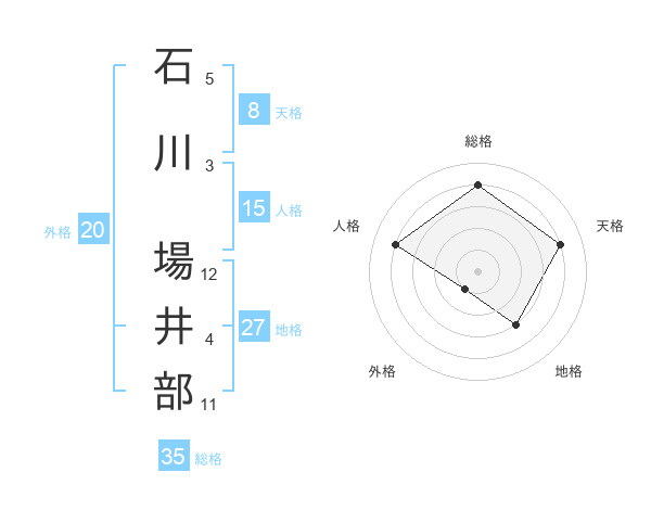 石川 場井部さんを姓名の画数から五運を鑑定