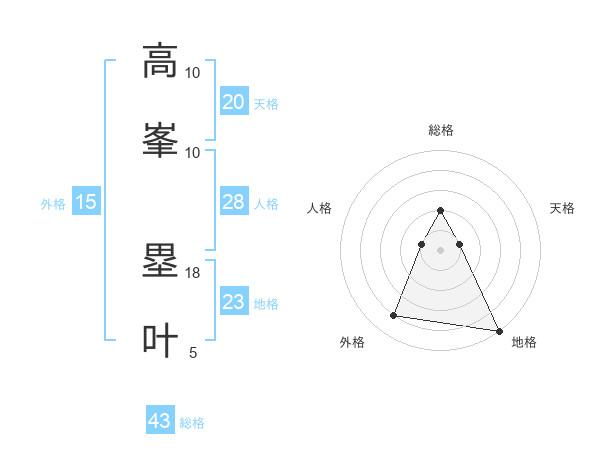 高峯 塁叶さんを姓名の画数から五運を鑑定