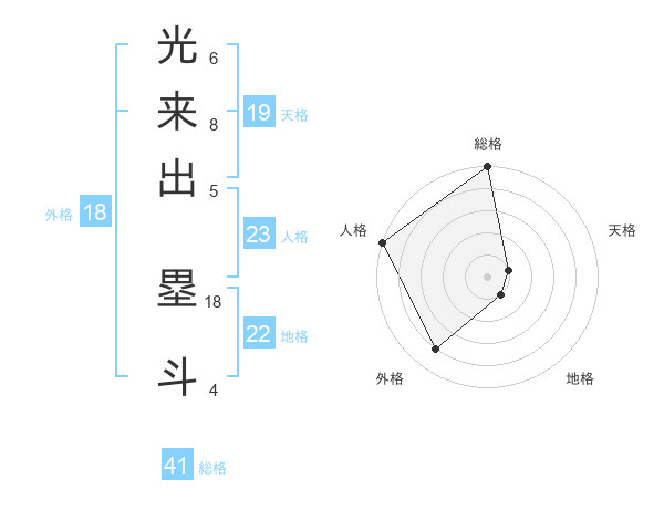 光来出 塁斗さんの外格は18画の4点!