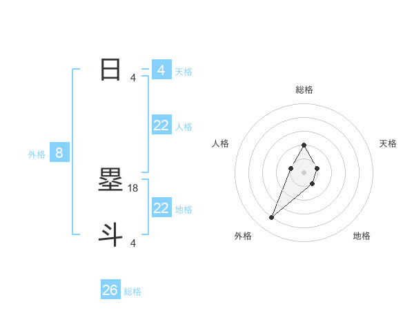 日 塁斗さんの総格は26画の2点!