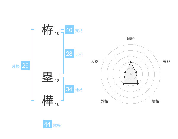 栫 塁樺さんの総格は44画の2点!