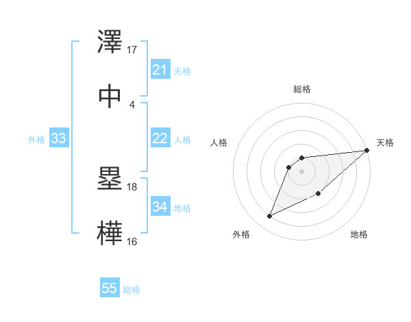澤中 塁樺さんの総格は55画の1点!