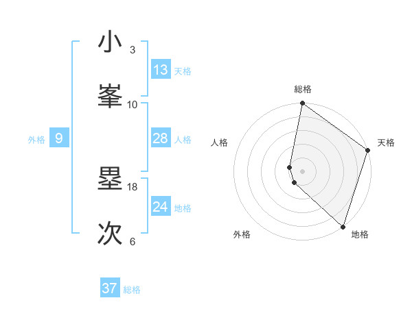 小峯 塁次さんの総格は37画の5点!