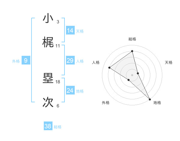 小梶 塁次さんを姓名の画数から五運を鑑定