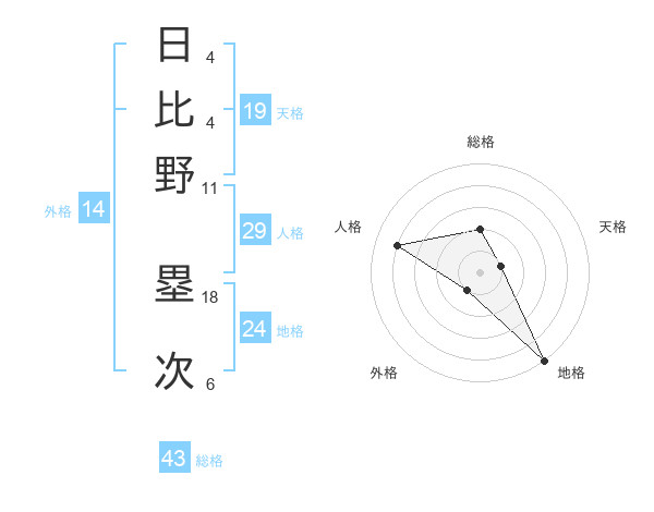 日比野 塁次さんを姓名の画数から五運を鑑定