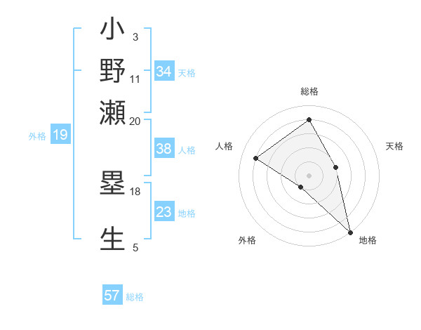 小野瀬 塁生さんを姓名の画数から五運を鑑定