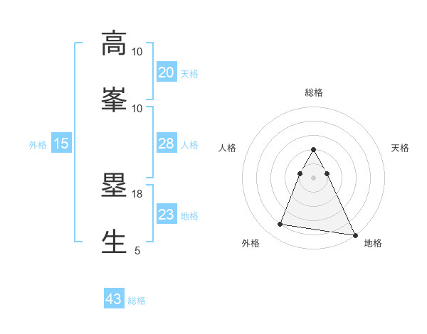 高峯 塁生さんを姓名の画数から五運を鑑定
