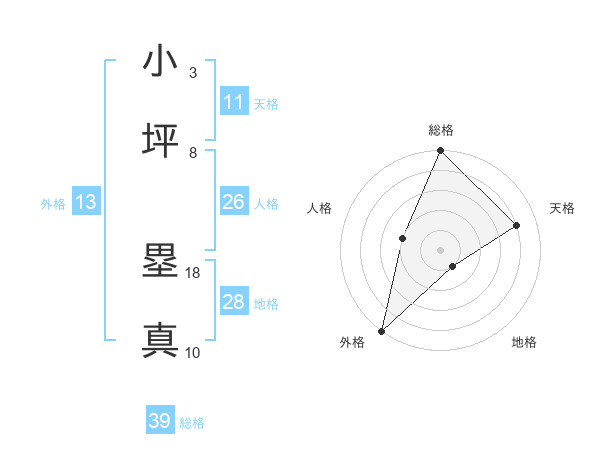 小坪 塁真さんの総格は39画の5点!