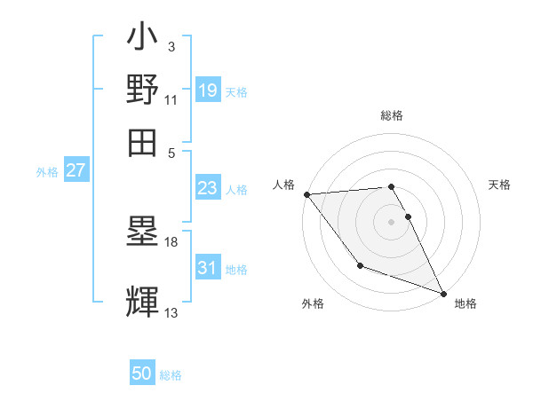 小野田 塁輝さんの総格は50画の2点!