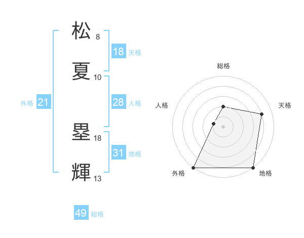 松夏 塁輝さんの地格は31画の5点!